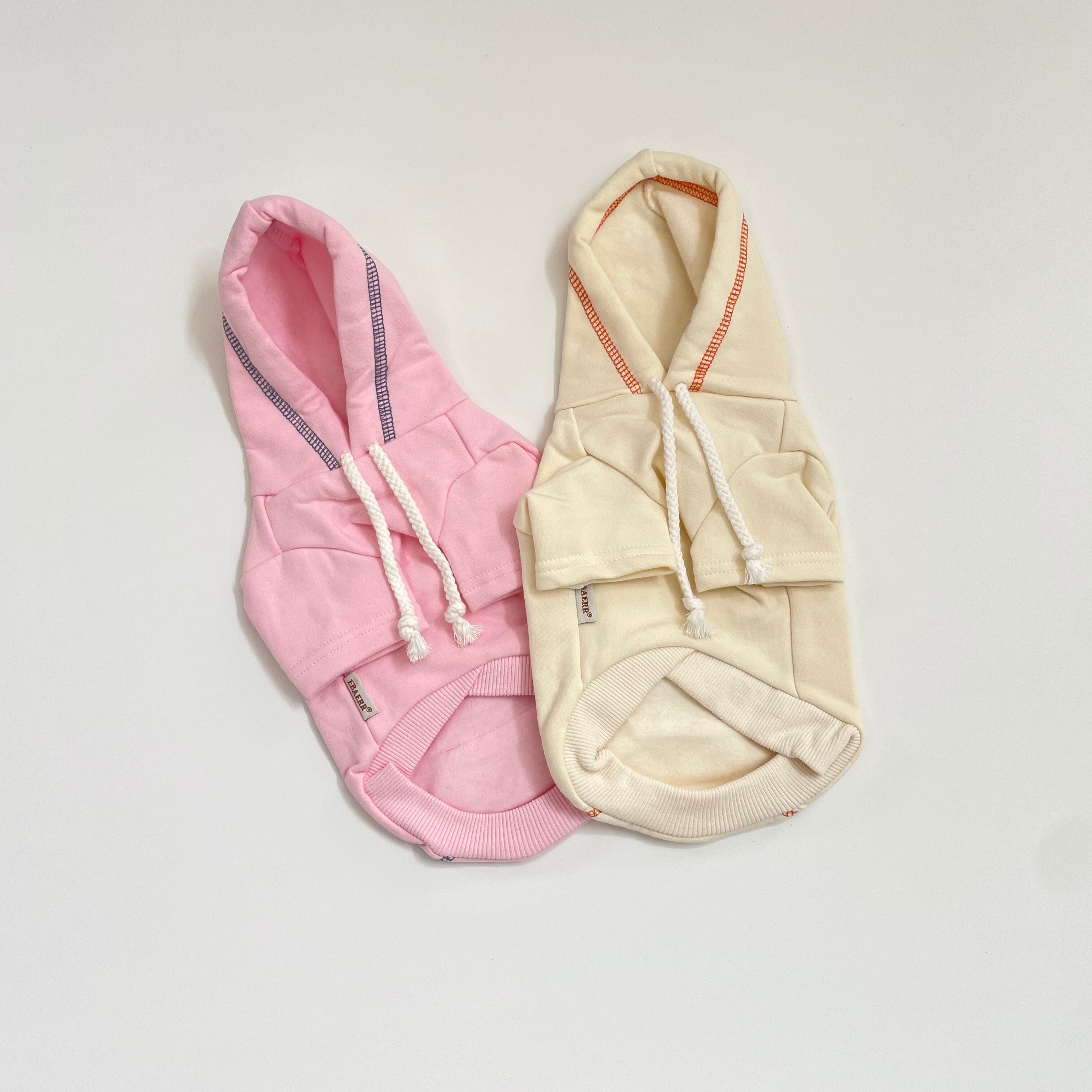 かわいいカラーリングとフードとポケットに入っているステッチがポイントのフーディー。