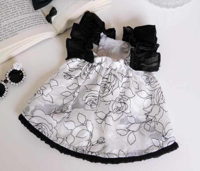 肩の大きめなギャザーとローズ柄をモノトーンでまとめた華やか上品なワンピース。