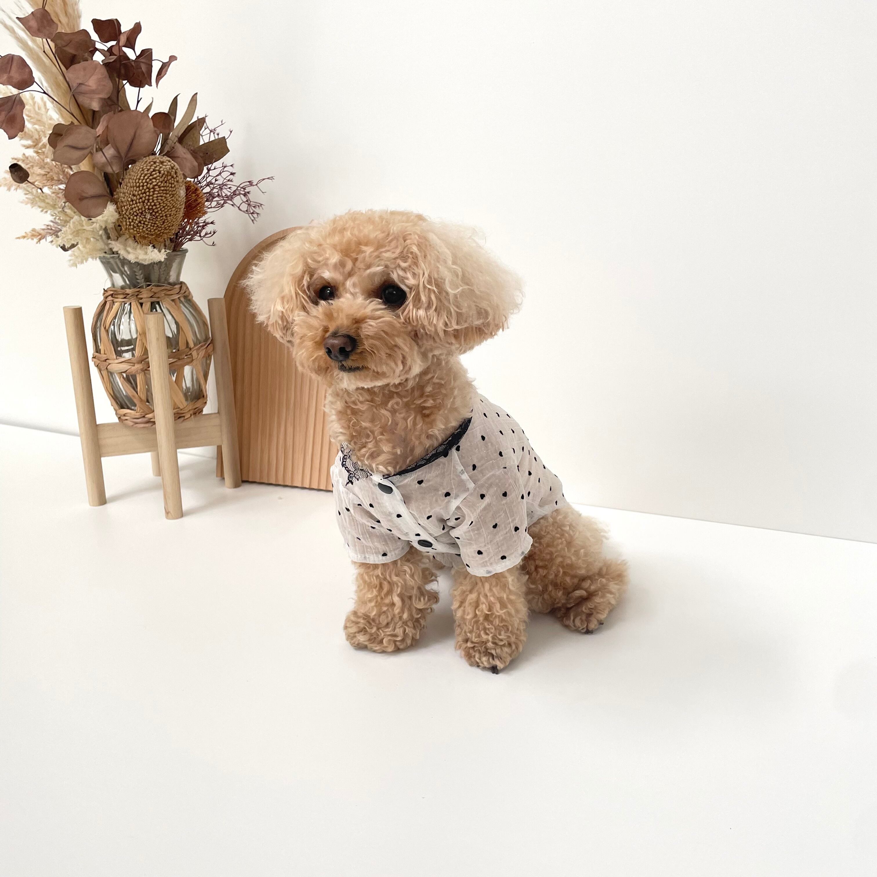 シースルーの軽い生地感!夏に活躍するドットトップス。